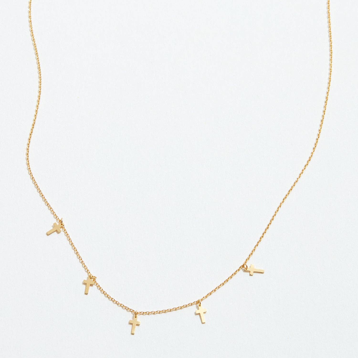 Elevate your style with this elegant gold chain necklace adorned with multiple dangling cross charms. Perfect for layering or wearing solo, this piece adds a touch of faith-inspired sophistication to any look. Crafted from polished gold-tone metal, it offers a delicate yet striking design that complements casual and dressy outfits alike. Ideal for gifting or everyday wear, this lightweight necklace brings meaning and shine to your jewelry collection.
